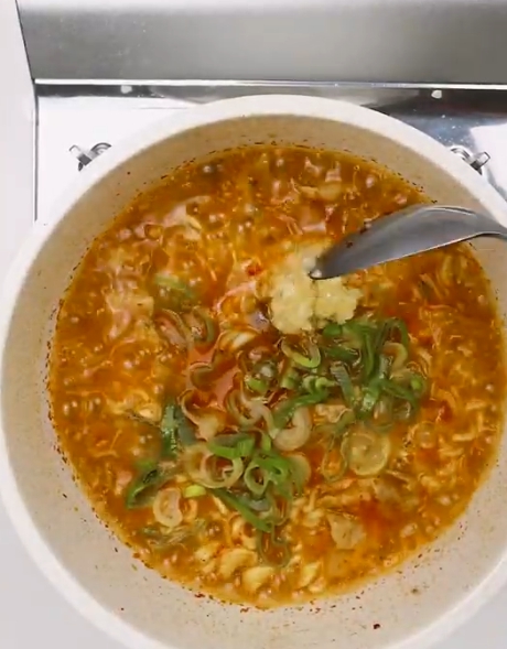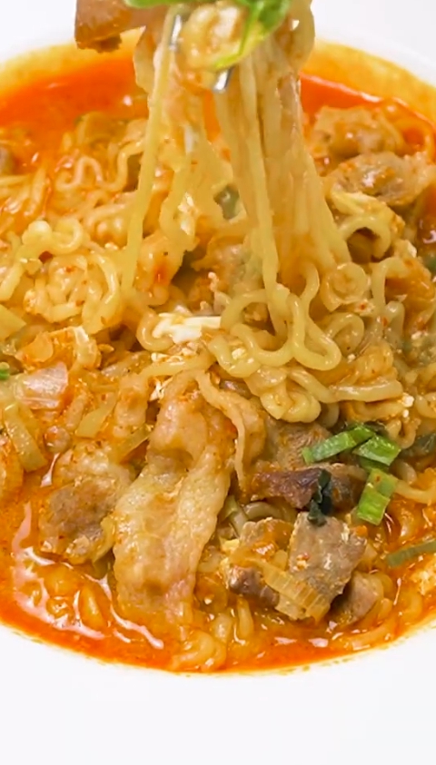 감탄밖에 안나오는 삼겹살라면 초간단 1분 레시피 (얼큰하고 진한 해장라면 )