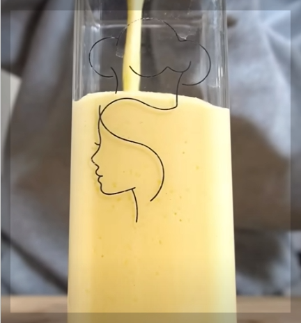 ④ 아까 미리 갈아둔 완성된 스무디를 컵에 담아두고,